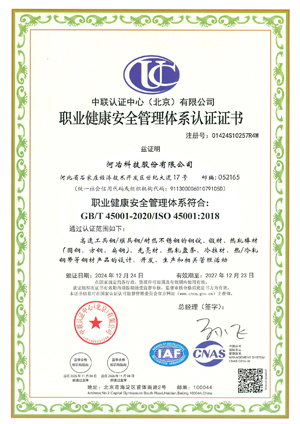 2012年12月,公司依據ISO14001:2004、OHSAS18001:2007標準,建立了環境、職業健康安全管理體系,通過了中聯認證中心北京有限公司的認證;