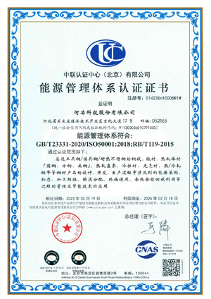 2020年2月,公司依據GB/T23331-2012/ISO50001:2011標準,建立了能源管理體系,通過了中聯認證中心(北京)有限公司認證;